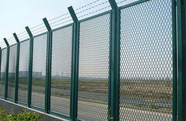 刀片刺繩后又很好的增強(qiáng)了安全防護(hù)性能。采用電鍍、熱鍍、噴塑、浸塑等防腐形式,具有很好的耐老化、耐曬、耐候等特點(diǎn)。機(jī)場(chǎng)護(hù)欄網(wǎng)其產(chǎn)品造型美觀、花色多樣,既起到圍欄作用,又起到美化作用。由于具有安全性高、防攀爬能力好,網(wǎng)片連接方式采用特制SBS緊扣件,有效防止人為的破壞性拆卸,橫向四道折彎加強(qiáng)筋,使網(wǎng)面強(qiáng)度顯著增加。